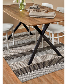 Nydelig garnmatte i flott mønster som finnes i flere størrelser og farger. En lettstelt og stilren matte som gjør seg fint i alle rom. Vask 30°. Kvalitet 100% bomull.