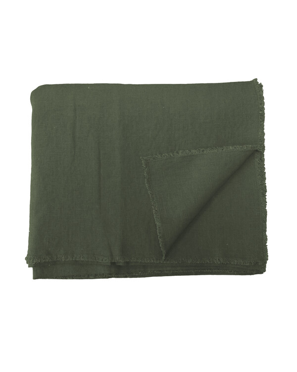 Nydelig duk i naturmaterialet lin, som skaper en rustikk følelse i hjemmet ditt. Kvalitet 100% lin, vask 40°. Størrelse 140x250 cm. Farge olivengrønn.