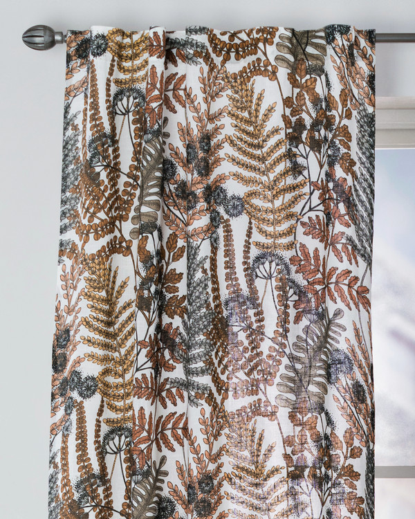 Nydelige mønstrede gardiner med skjulte hemper på baksiden.