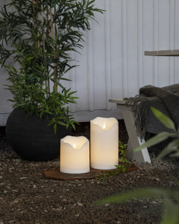Klassisk LED kubbelys med en varmhvitt naturtro flamme. Et utmerket alternativ å ha stående utendørs for å lyse opp i mørket. Lysts timer kan stilles inn for å lyse de timene du ønsker.