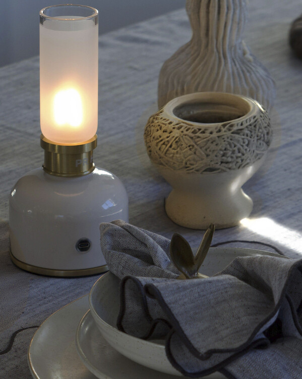 Frida er en sjarmerende bærbar og oppladbar bordlampe som kombinerer retrodesign med moderne funksjonalitet. Med inspirasjon fra klassiske oljelamper skaper Frida en koselig atmosfære takket være sitt myke, varme lys og en fargetemperatur som føles innbydende. Lysstyrken kan enkelt justeres mellom 20 og 40 lumen, noe som gjør det mulig å tilpasse lyset etter dine behov og stemninger.