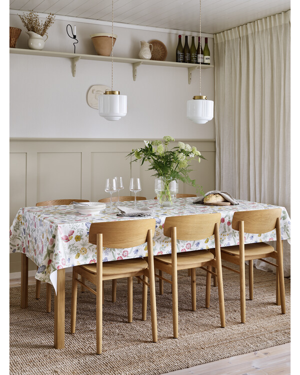Praktisk og dekorativ voksduk med nydelig blomstermotiv i vakre fargekombinasjoner.