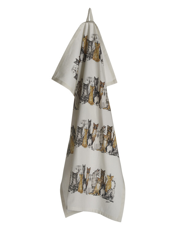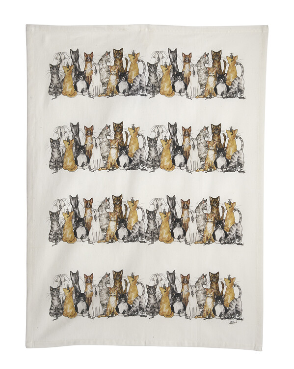 Et stilrent og praktisk kjøkkenhåndkle pyntet med et sjarmerende, håndtegnet kattemønster. Laget i mykt og slitesterkt bomullsstoff som tørker effektivt og blir en fin detalj på kjøkkenet. Perfekt til ditt eget hjem eller som gave til katteelskeren.