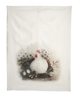 Et vakkert og praktisk kjøkkenhåndkle pyntet med et sjarmerende, håndtegnet mønster av en høne. Laget i mykt og sliteste...