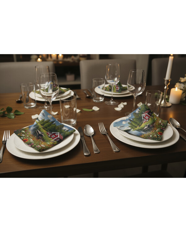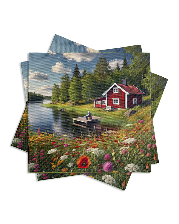 Servietter med et vakkert motiv inspirert av naturen i Småland – perfekte for å skape en hjemmekoselig og ekte stemning ved bordet.