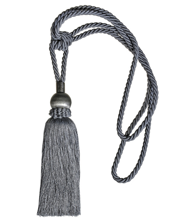 Gardinbånd med dusk i 100% polyester, 23 cm + 42 cm bånd. Farge grå.