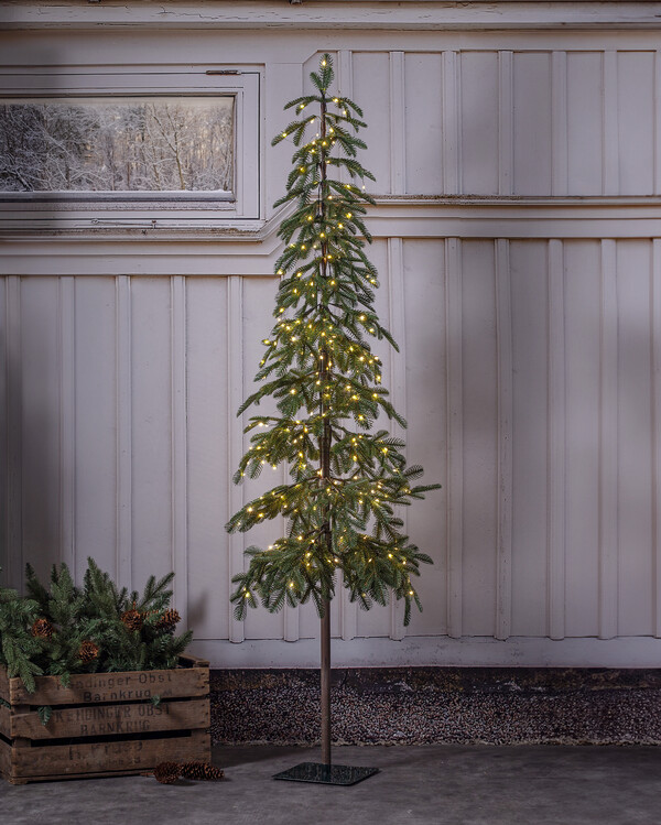Utstyrt med 240 varmhvite LED-lys, hvor noen blinker diskret, sprer det en stemningsfull glød både inne og ute. Drives av transformator. Firkantet base og fire medfølgende jordspyd gjør det stabilt selv utendørs. Finnes i to størrelser.